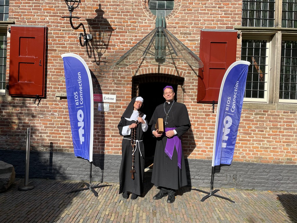 Ieder jaar organiseert TNO BIOS een netwerk event om de eigen medewerkers, die verspreidt zitten over vele locaties, in contact te houden met elkaar en met allerhande leveranciers. Dit jaar vond het event plaats in voormalig klooster Mariënhof in het centrum van Amersfoort. De gasten werden dan ook passend welkom geheten door Zuster Maria en Bisschop van Mariënhof. Later tijdens deze dag liepen onze Butler Leopold en Kok Kokkie als aanjagers van het netwerken en activiteiten zoals de fotohoek.